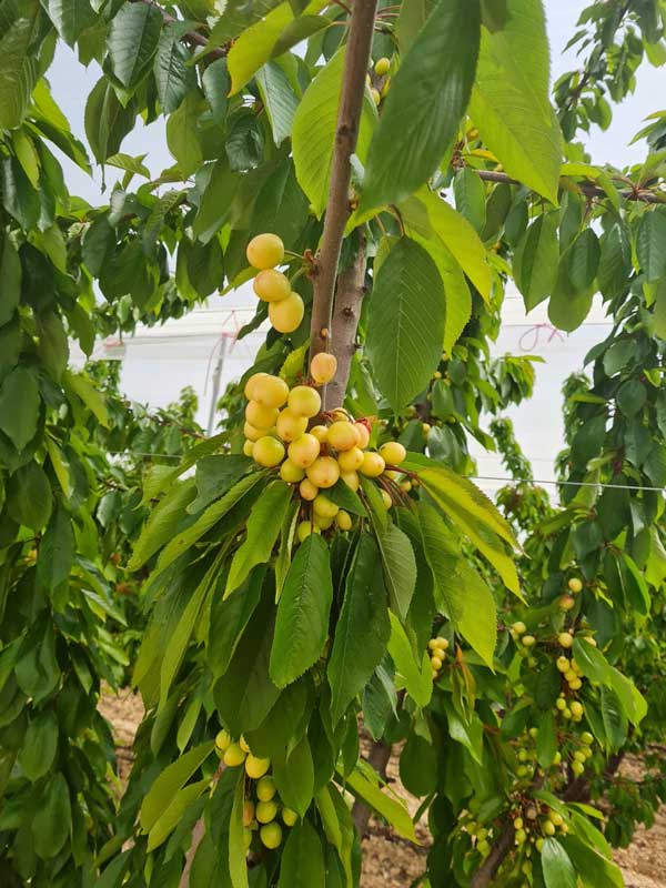DANIŞMANIMIZ FAHRİ KARATAŞ VE ÜRETİM MÜDÜRÜ OLARAK BİRLİKTE, MURCİA’DA YAPMIŞ OLDUĞUMUZ, ERKENCİ KİRAZ ÇEŞİDİ ROYAL TIOGA BAHÇE ZİYARETLERİ SONUCUNDA, 600m RAKIMDA VE 800 – 1000 SAAT SOĞUKLAMAYA SAHİP BÖLGEDE YAPILAN YETİŞTİRİCİLİKTE DE AĞAÇLARIN, GAYET SAĞLIKLI, MEYVE OLGUNLAŞMASININ İSE DÜŞÜK RAKIMLI BÖLGEYE NAZARAN YAKLAŞIK 15 – 20 GÜN DAHA GEÇ OLGUNLAŞACAKLARI GÖZLEMLENMİŞTİR. BU DURUM BİZE, İLKBAHAR GEÇ DONLARININ ETKİLİ OLMADIĞI FARKLI YÜKSELTİLERDE DE, MEYVEDE KADEME OLUŞTURARAK PAZARDAKİ BOŞLUĞU DOLDURABİLECEĞİMİZ BİR ÇEŞİT OLDUĞUNU NET OLARAK GÖSTERMİŞTİR.